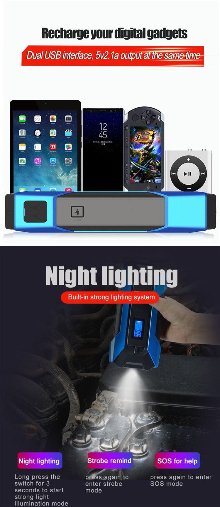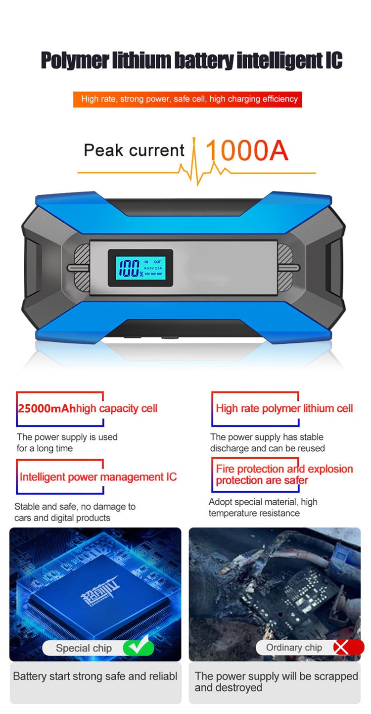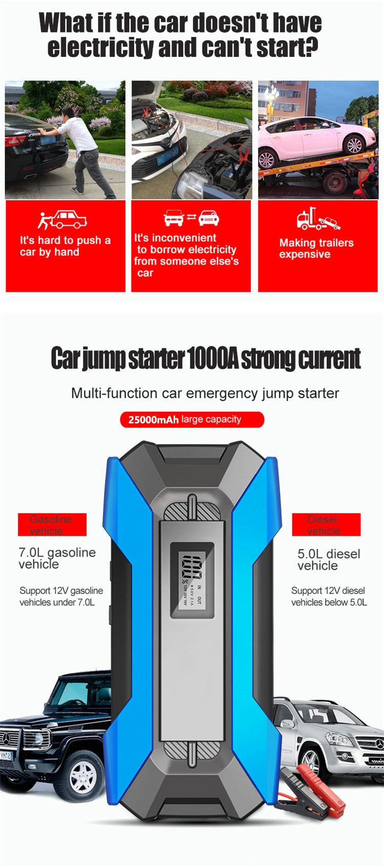 12V Car Jump Starter Portable Power Bank Emergency Starting Device Battery Booster 25000mAh For Car Starter