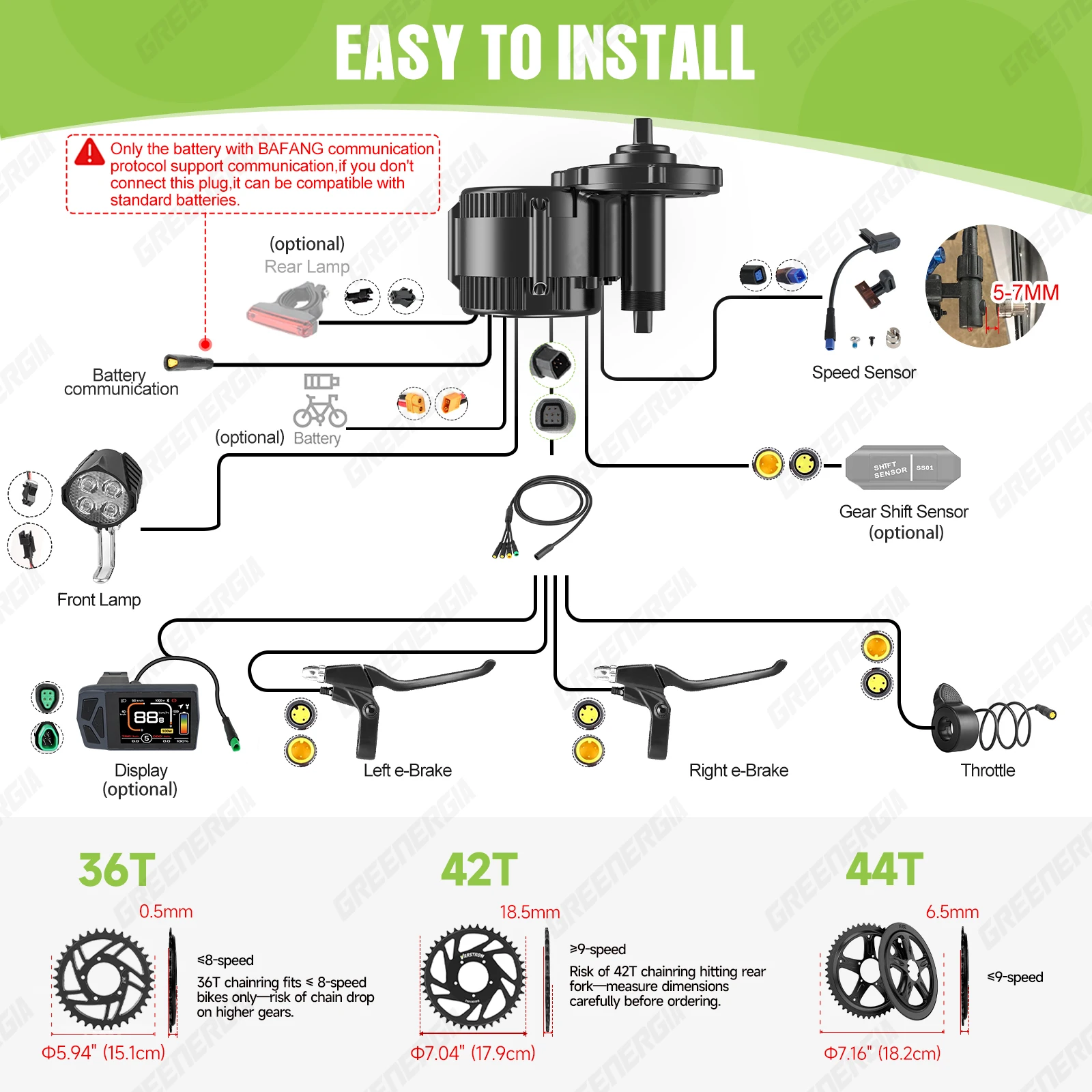 100mm BB size: Fits standard 89–105mm bottom brackets with 34–36mm inner diameter.(Pls contact us for the spacers for not 100mm BB motor )