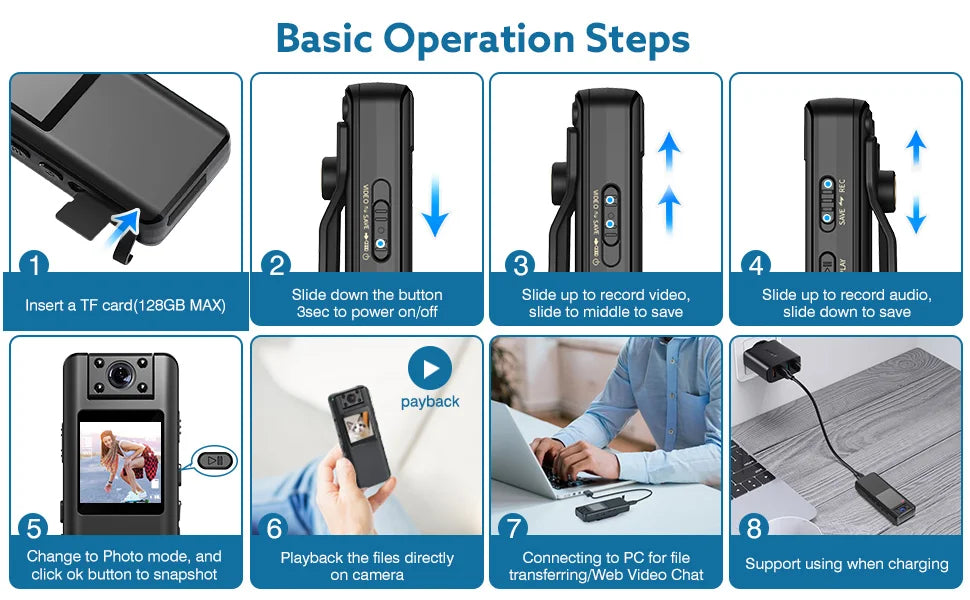 BOBLOV A22 Small Body Camera LCD Screen Cam IR Night Vision Body Camera 1080P Recording Motion Detection Cycling Bike Car Cam
