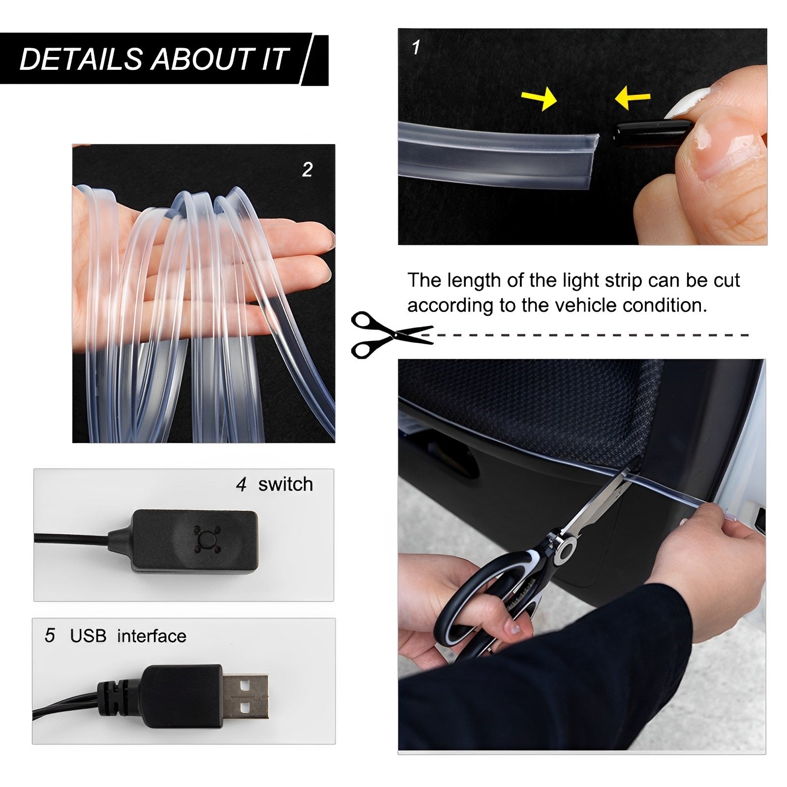 Car Interior Strip Light 4m 12V Remote Control Auto Inside Ambient Light 7Color LED RGB Dash Light Waterproof Car USB Neon Light
