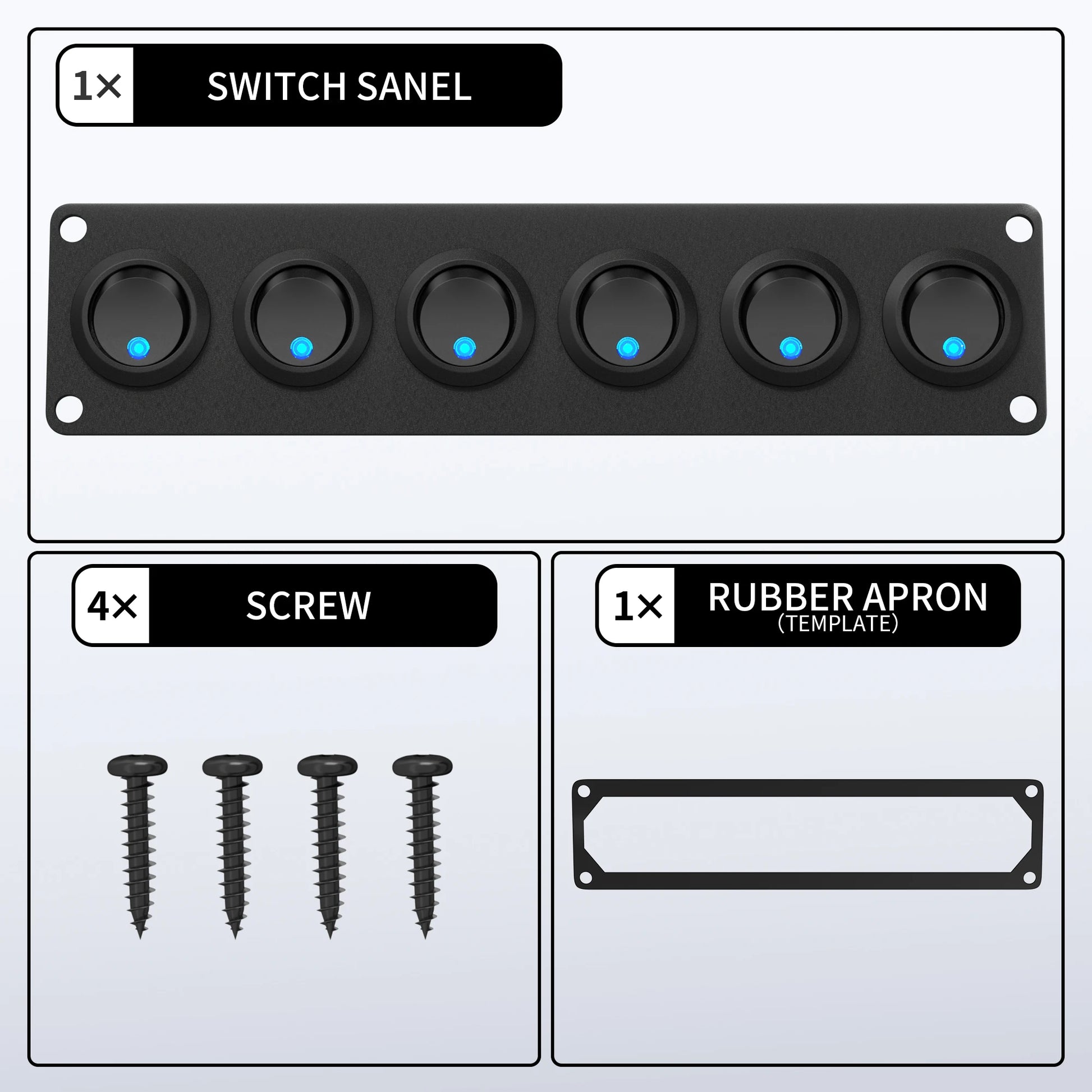 DaierTek 6 Gang Switch Panel 12V Rocker Toggle Switch Panel