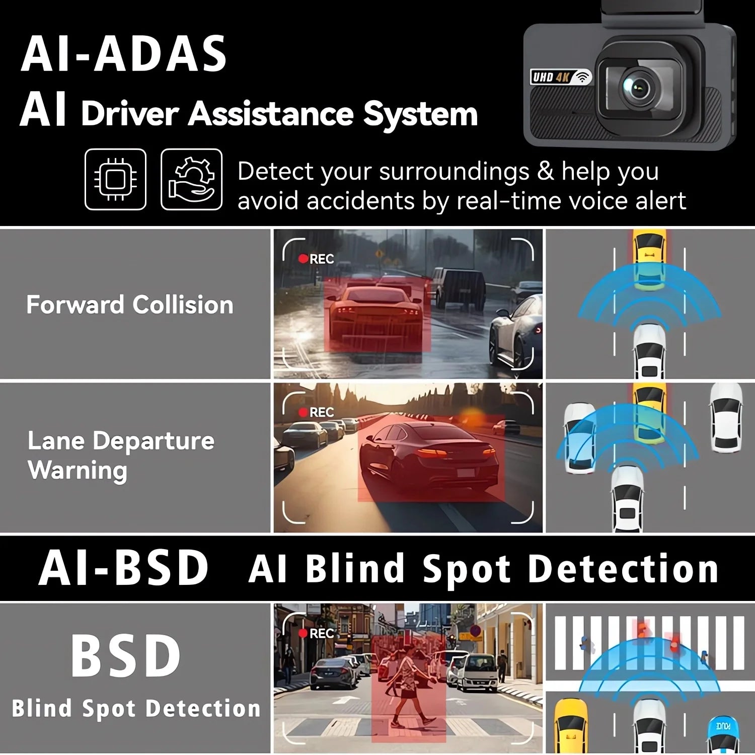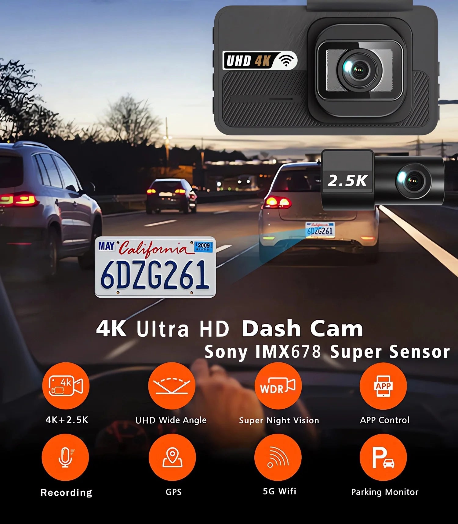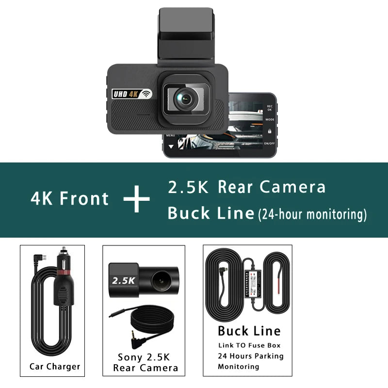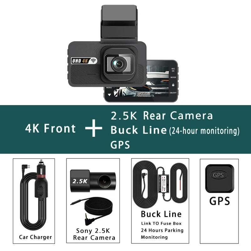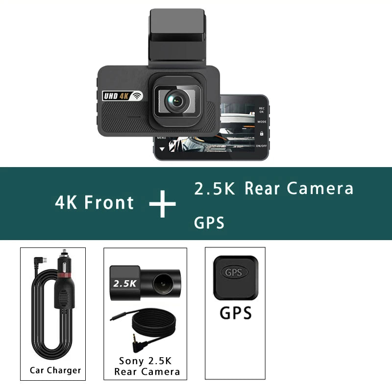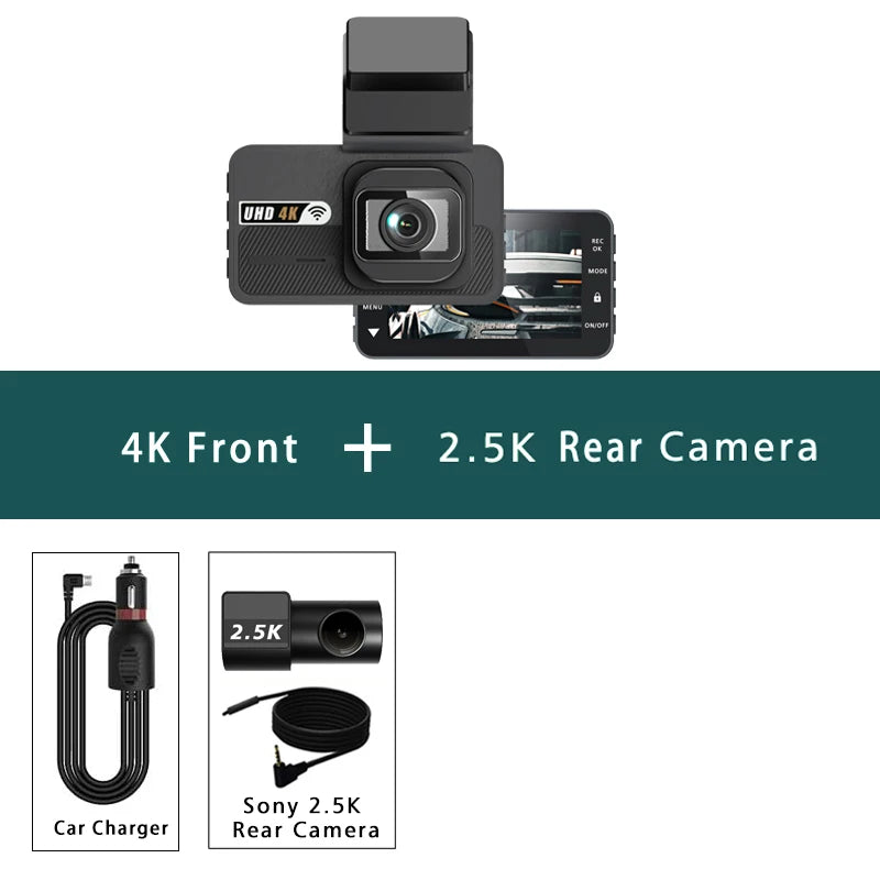 Dash Cam UHD 3840*2160P 4K + 2.5K Dual Lens Car DVR with ADAS 5G WiFi GPS Black Box Video Drive Recorder WDR/HDR Night Vision
