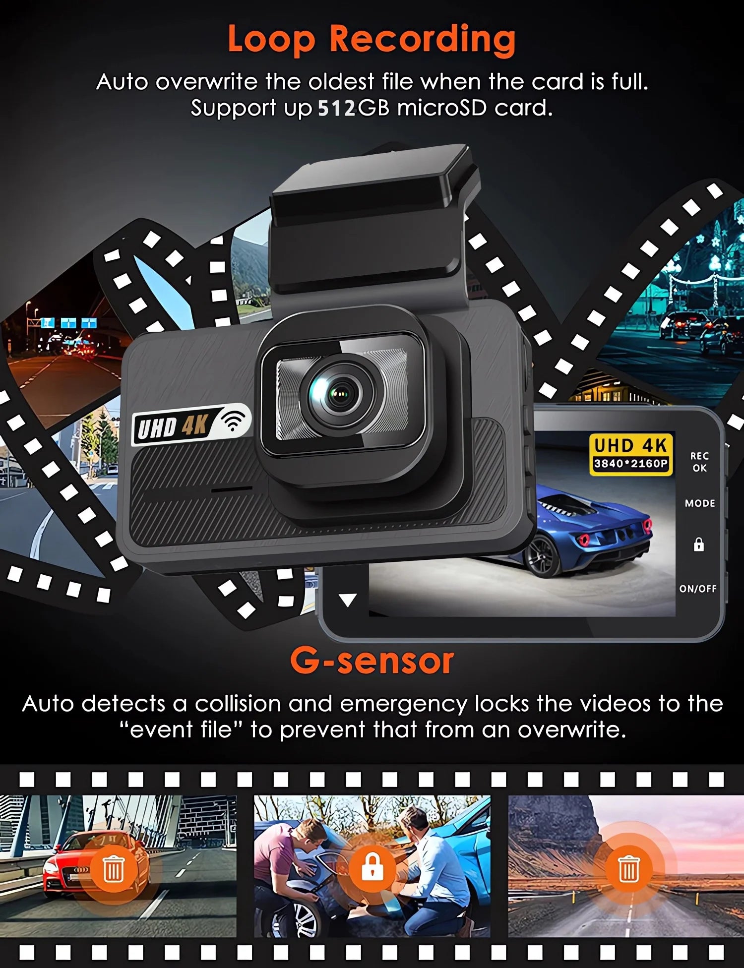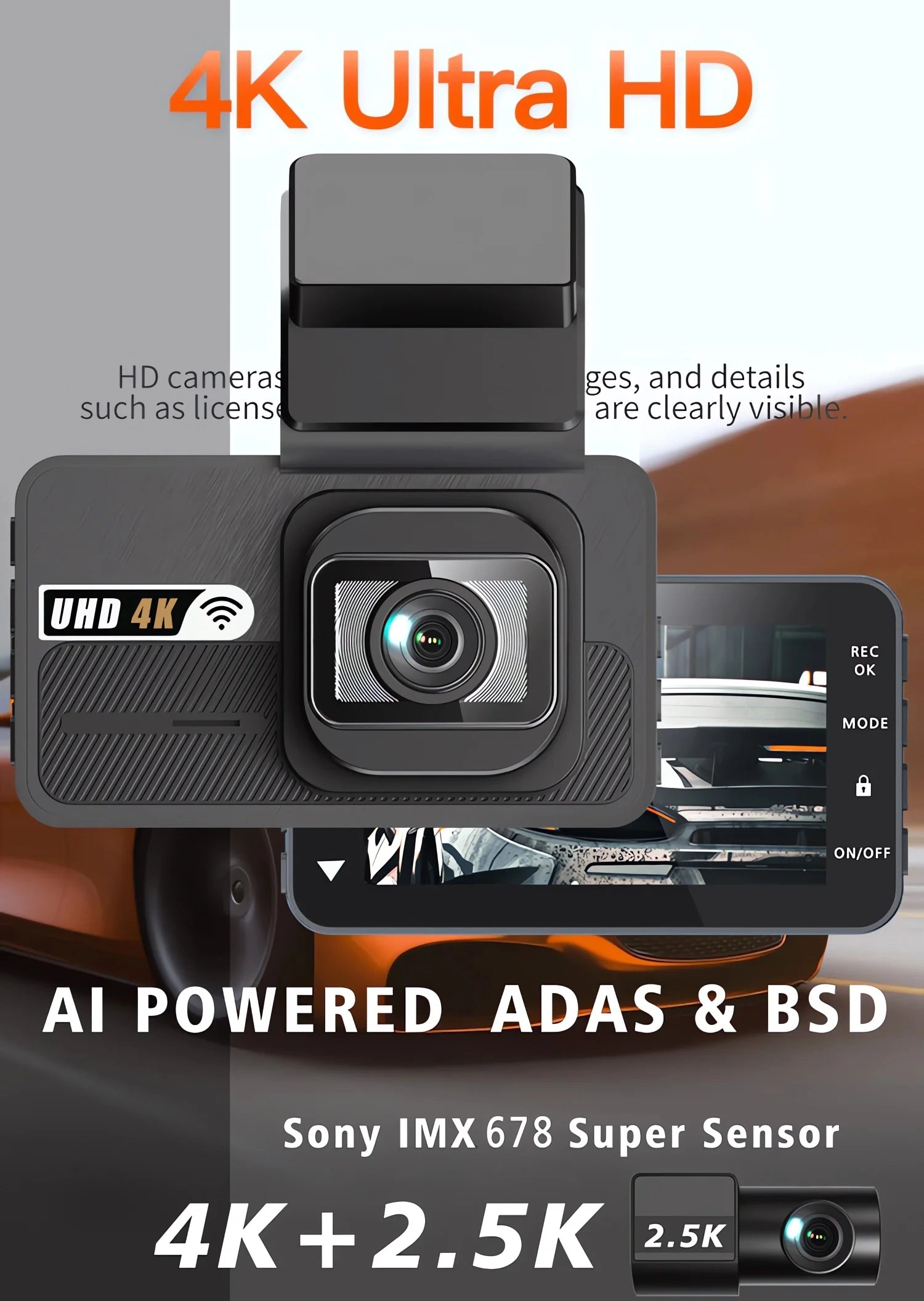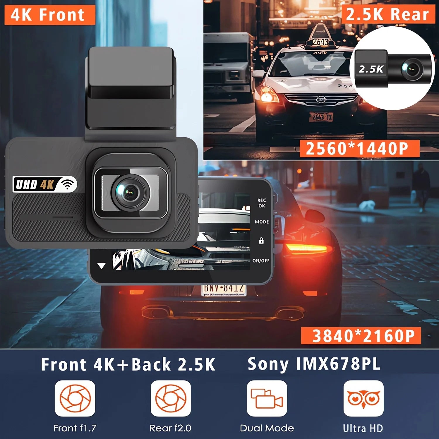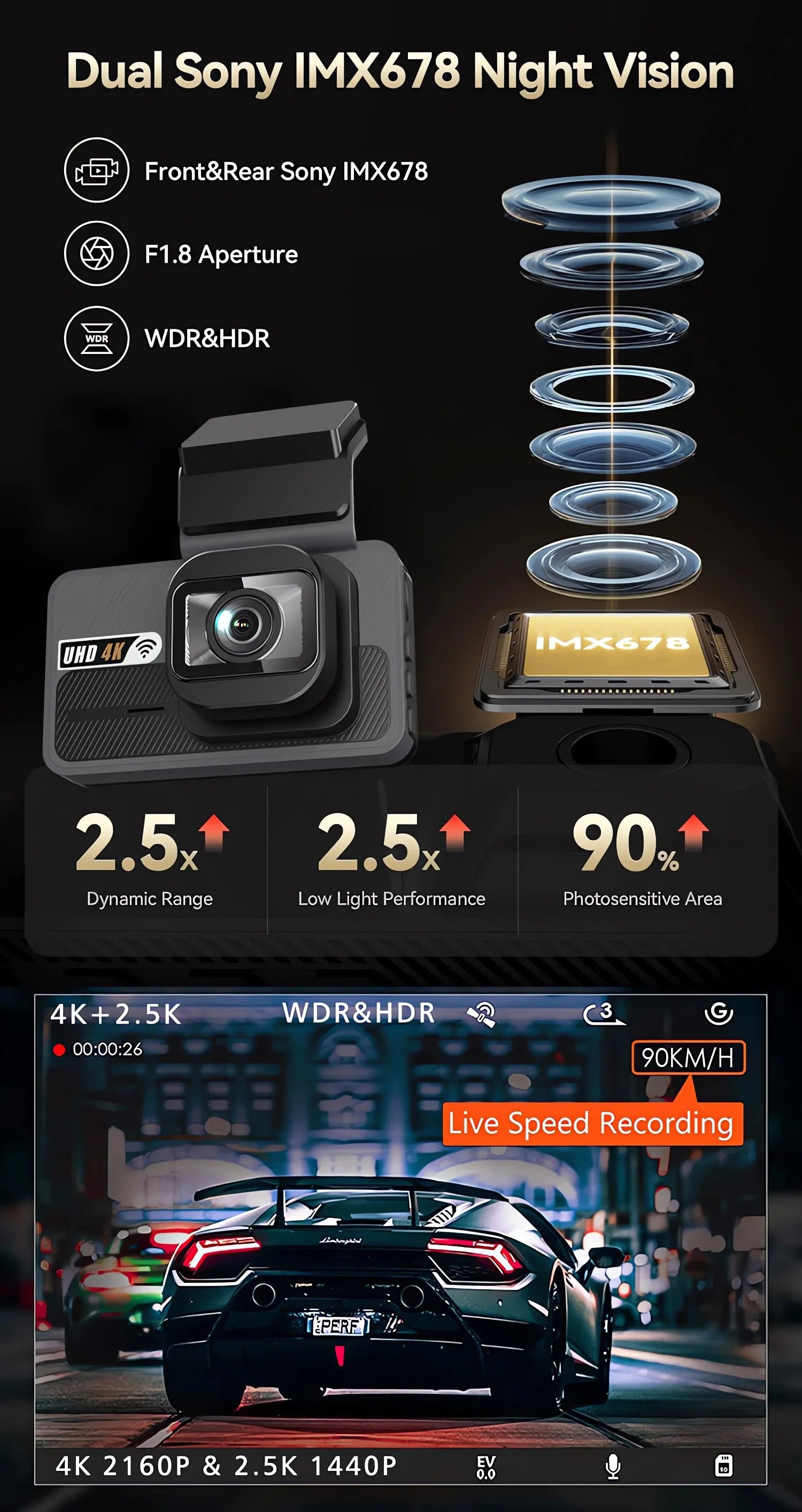 Experience unparalleled clarity with the 4K+2.5K dual lens recording, capturing every detail of your journey.