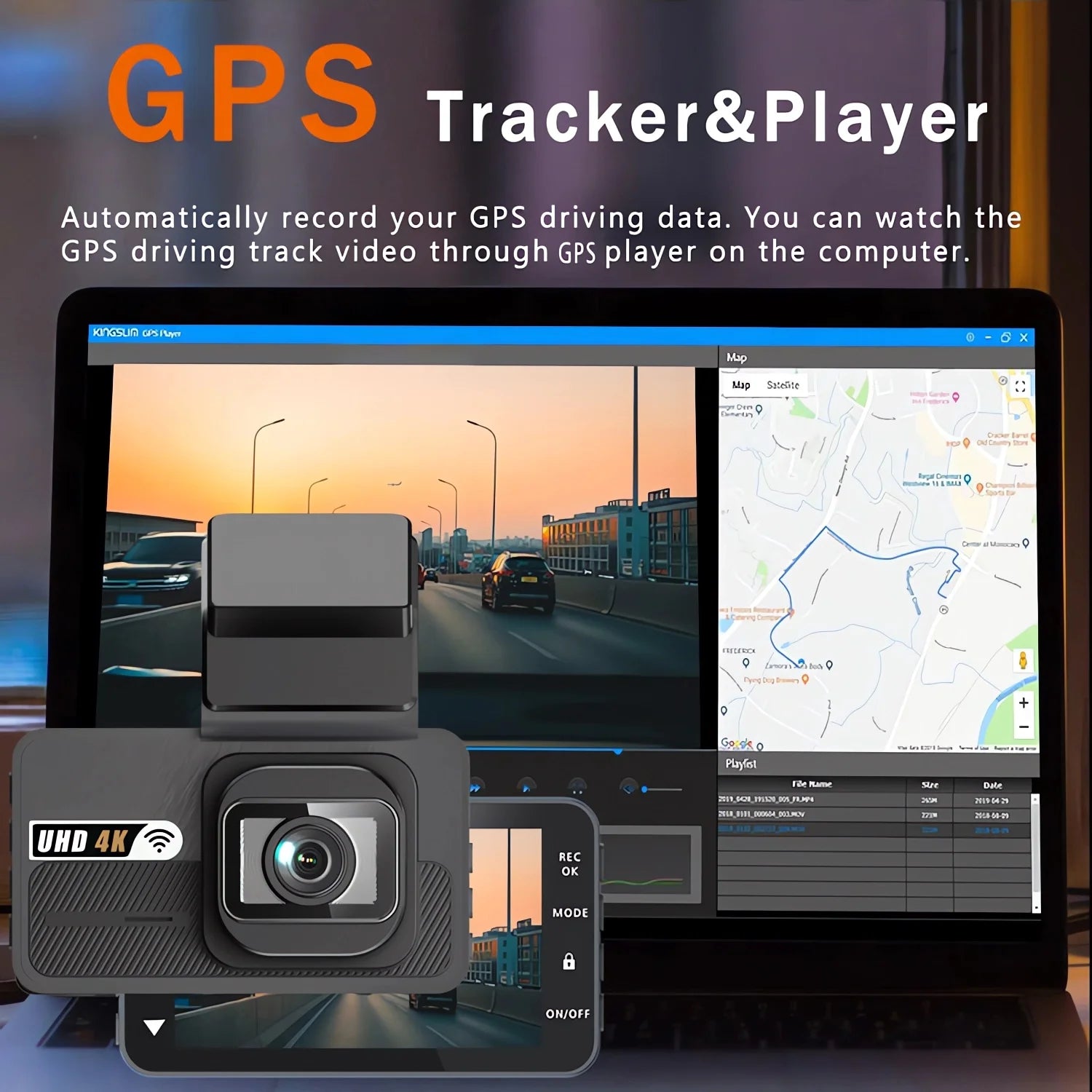 2. Install the DVR on the car and start the recording mode. Start the car outdoors and drive for a certain distance. The GPS module will automatically capture the satellite signal and the DVR will automatically record the video with the GPS driving track.