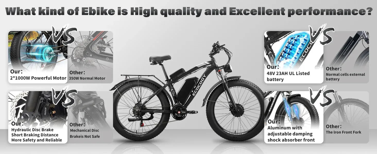 Fashionable electric bike, 2000W*2 dual motors 52V 32AH long battery life hydraulic brake stable and durable electric bicycle