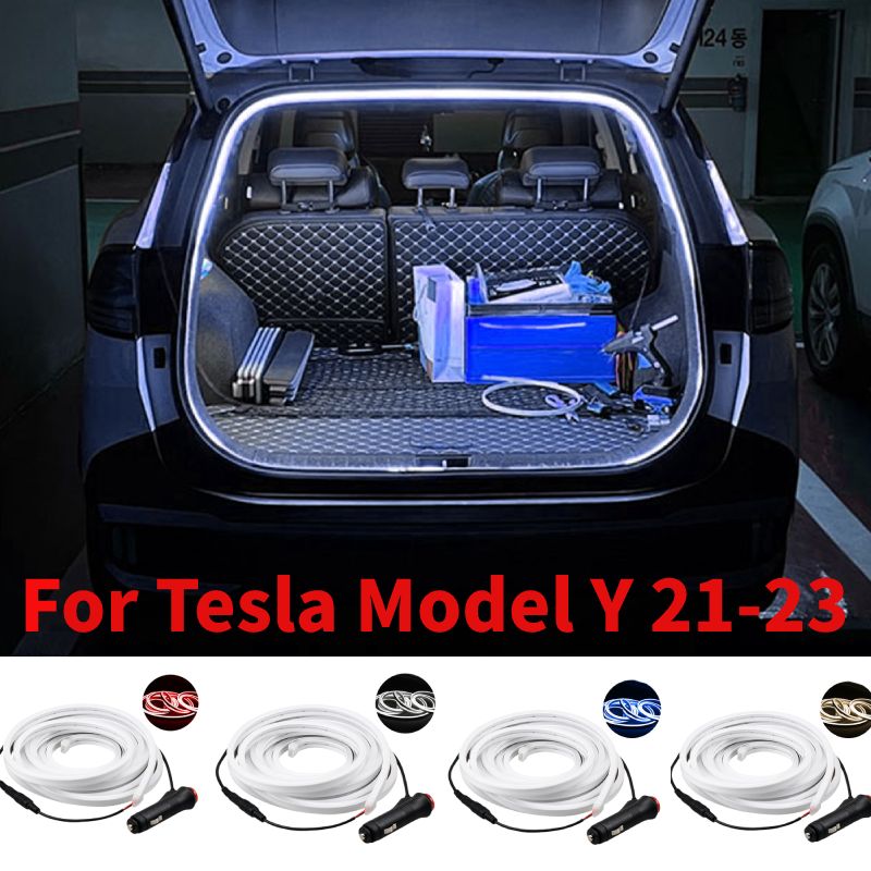 For Tesla Model Y 21-23 4 Colors Car Trunk LED Lamp Strip 12V IP65 Waterproof Interior Lights