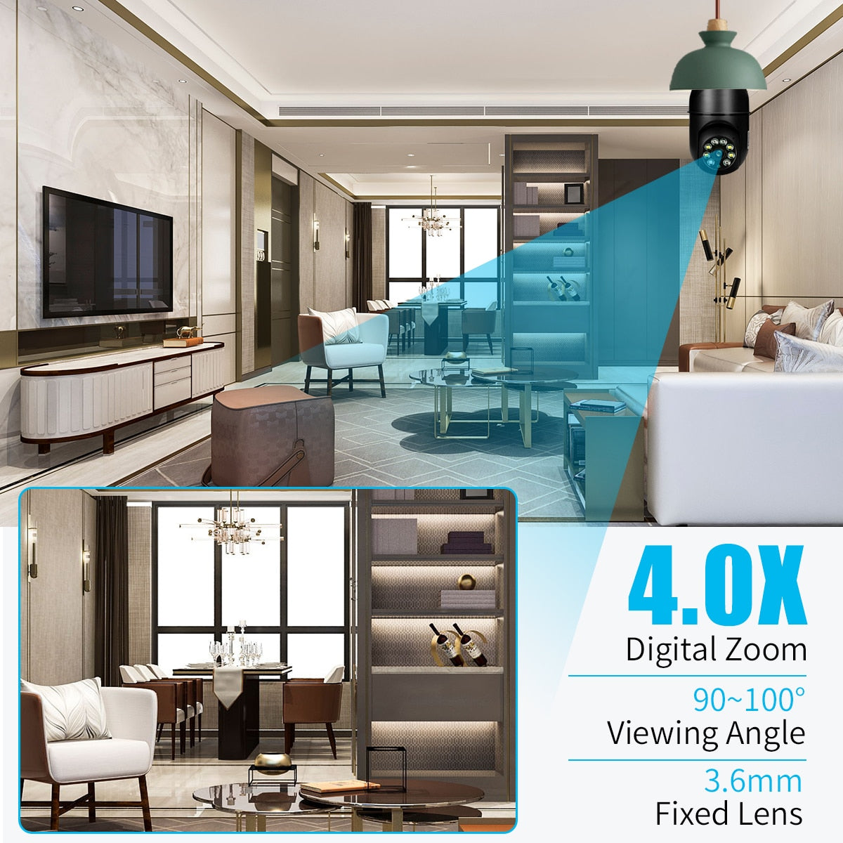 Keep your home and family safe from porch pirates and others with this 5G Bulb Surveillance Camera. Night Vision, WiFi Surveil Camera 4X Digital Zoom Security IP Cam Human Tracking Video Surveillance.