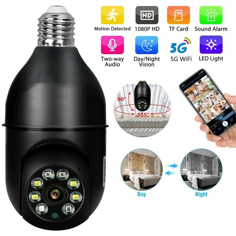 5G Bulb Surveillance Camera. Night Vision, WiFi Surveil Camera