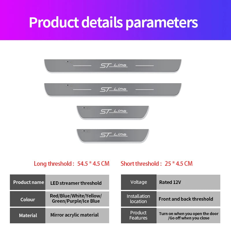 New LED Welcome Pedal Car Scuff Plate Pedal Door Sill Pathway Light For Ford ST Line Focus, Fiesta, Kuga, and Escape Auto Accessories
