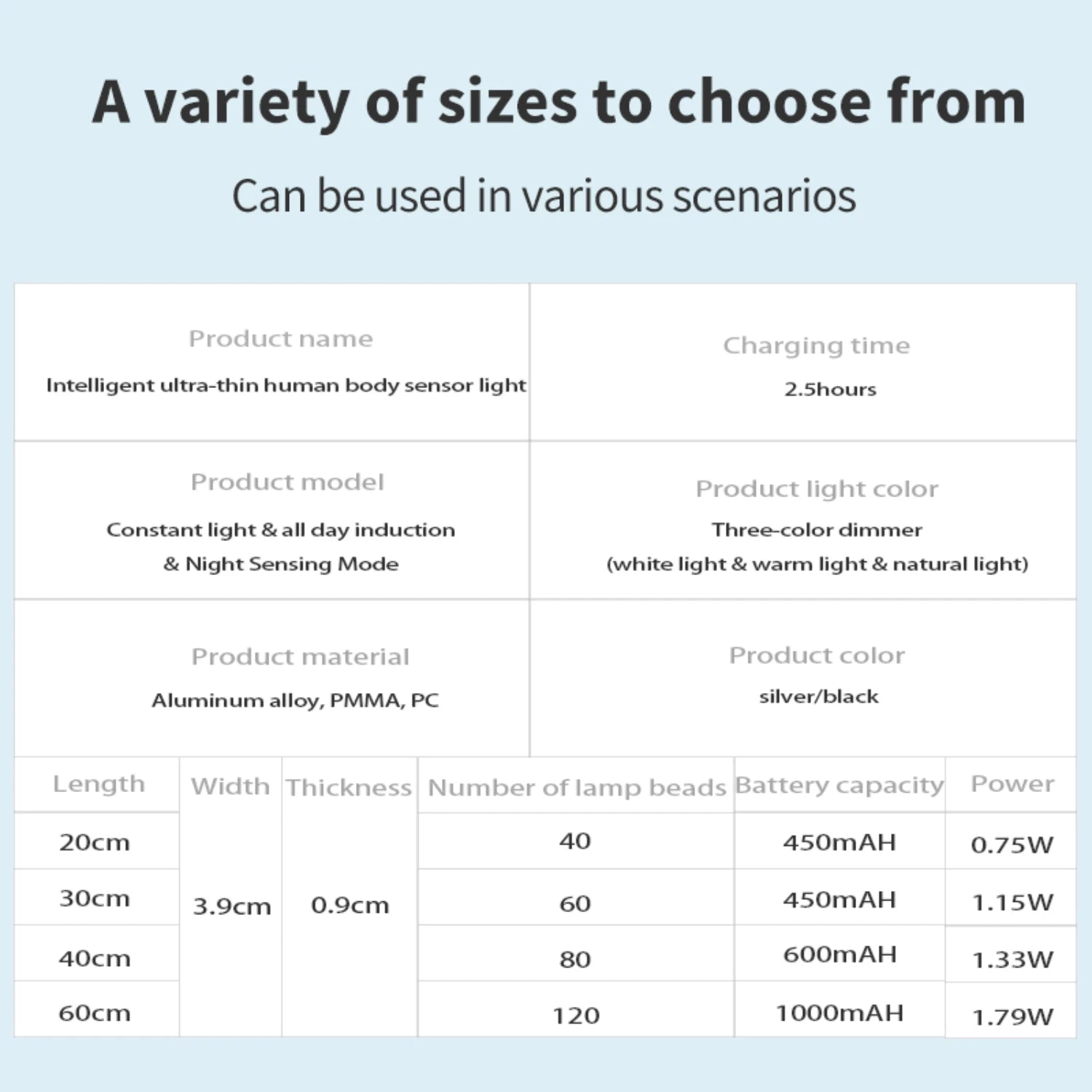 New Wireless Rechargeable LED Motion Sensor Lamp for Cupboard, Bedroom, and Wardrobe - Under Cabinet Night Light available in 20