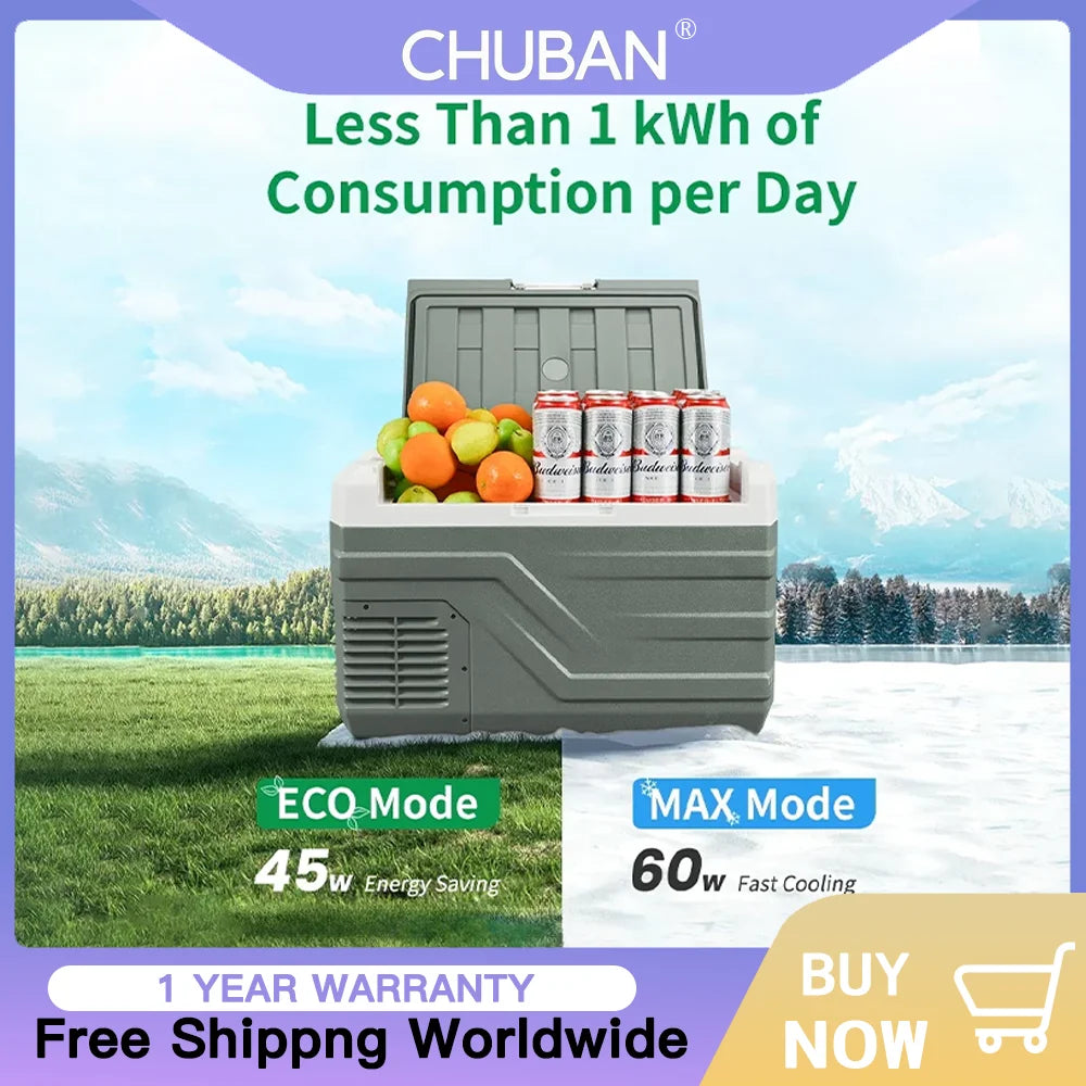 Equipped with a powerful and efficient compressor, this 12V fridge freezer can rapidly cool down from 25℃ to 0℃ in just 15 minutes and reach as low as -20℃ within an hour, allows you to store a variety of foods while keeping fresh. Enjoy a quick and reliable cooling experience.