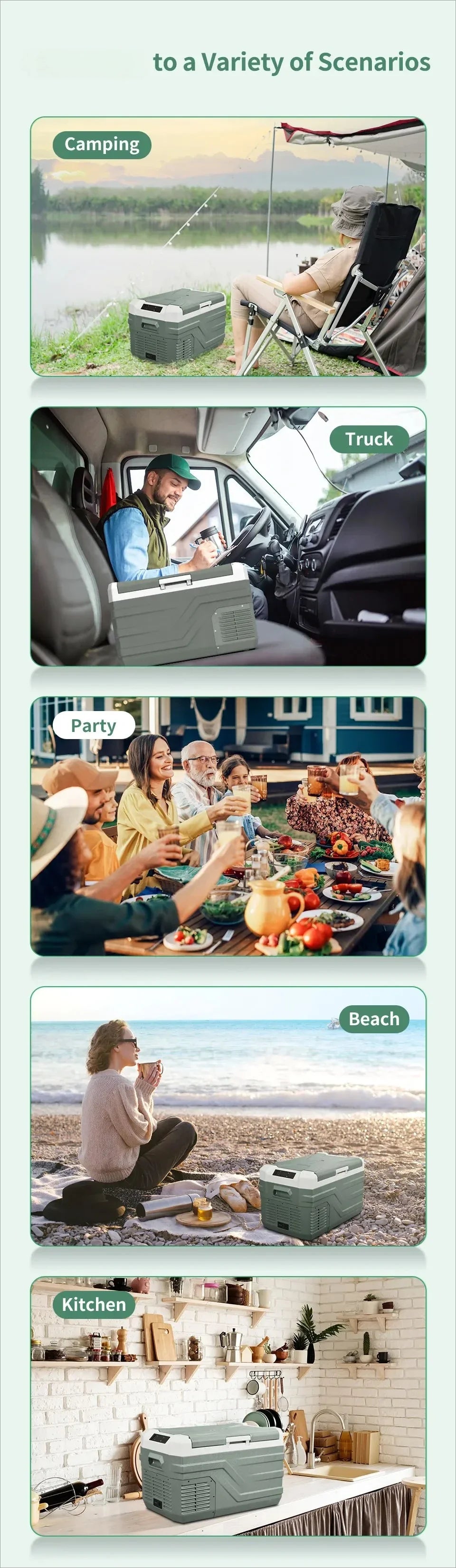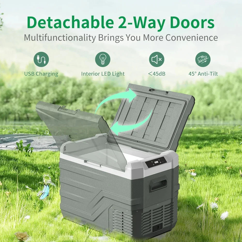 With the 25L/35L/45L optional of large storage space. This car fridge serves as a refrigerator or a freezer. You can easily adjust the temperature as you want, no ice needed! You can keep a variety of foods fresh on the go. Perfect for use in SUVs, RVs, campers, and even yachts, offering convenience wherever your adventures take you.