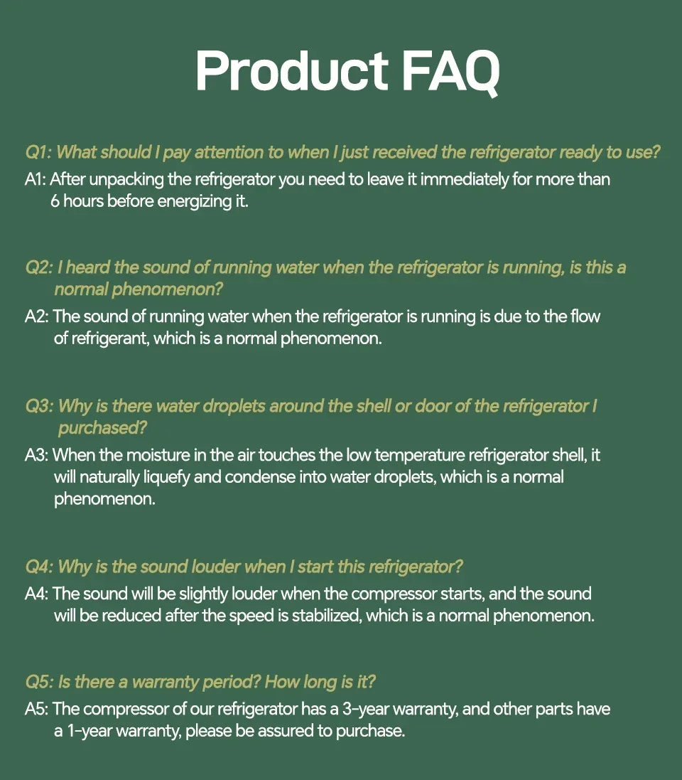Please leave the refrigerator for at least 6 hours after unpacking before turning on the power.