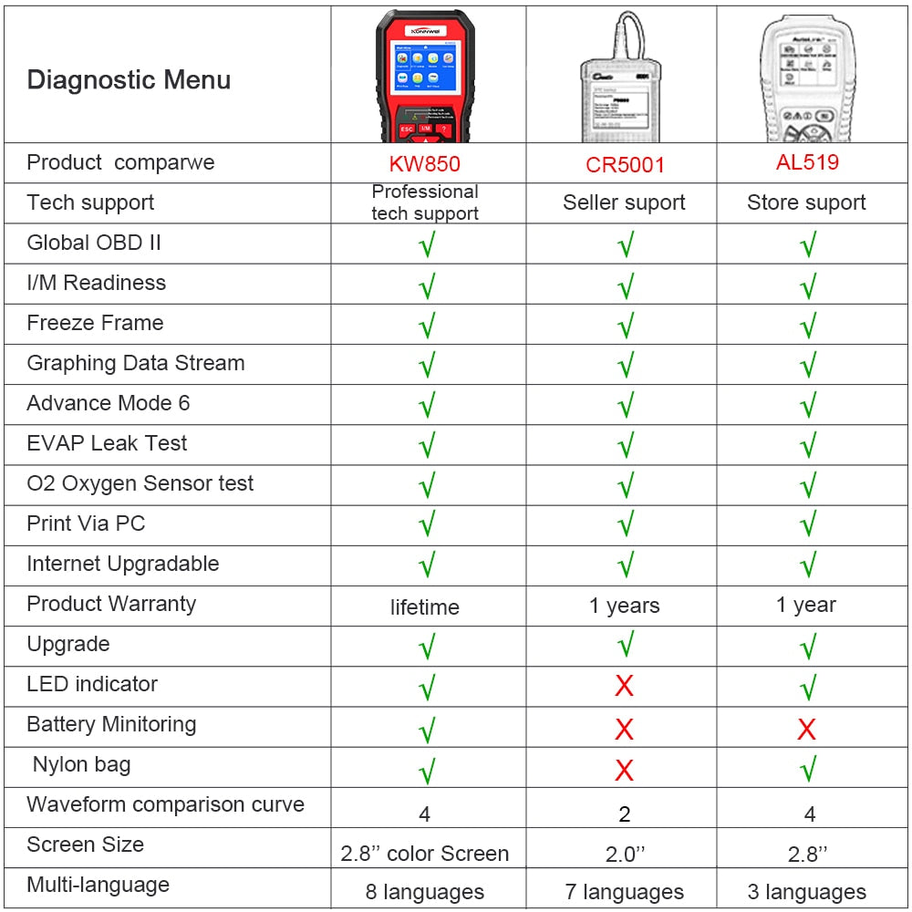 KONNWEI KW850 OBD2 Car Diagnostic Scanner Tools OBD 2 Auto Diagnostic Tool Check Engine Automotive Car Scanner Code Reader Black