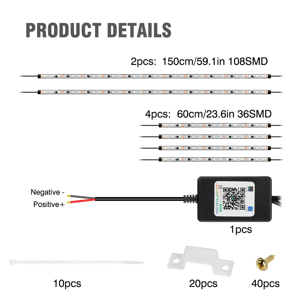 OKEEN 6pcs Led RGB Car Underbody Lights Strip