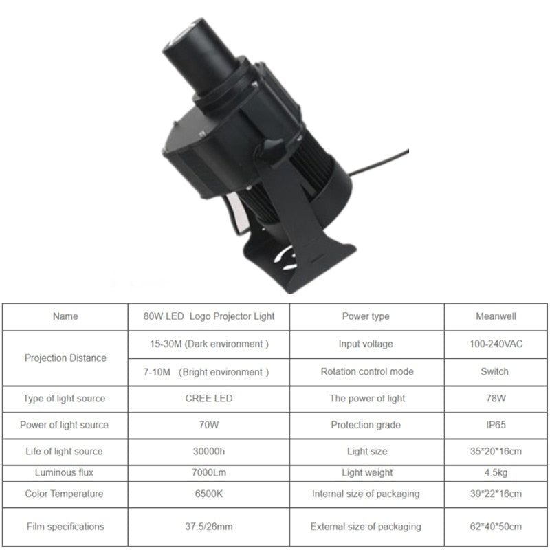 Custom 80W IP65 Outdoor LED Rotating Gobo Projectors Advertising Logo Projector Light Lamp Store Lights