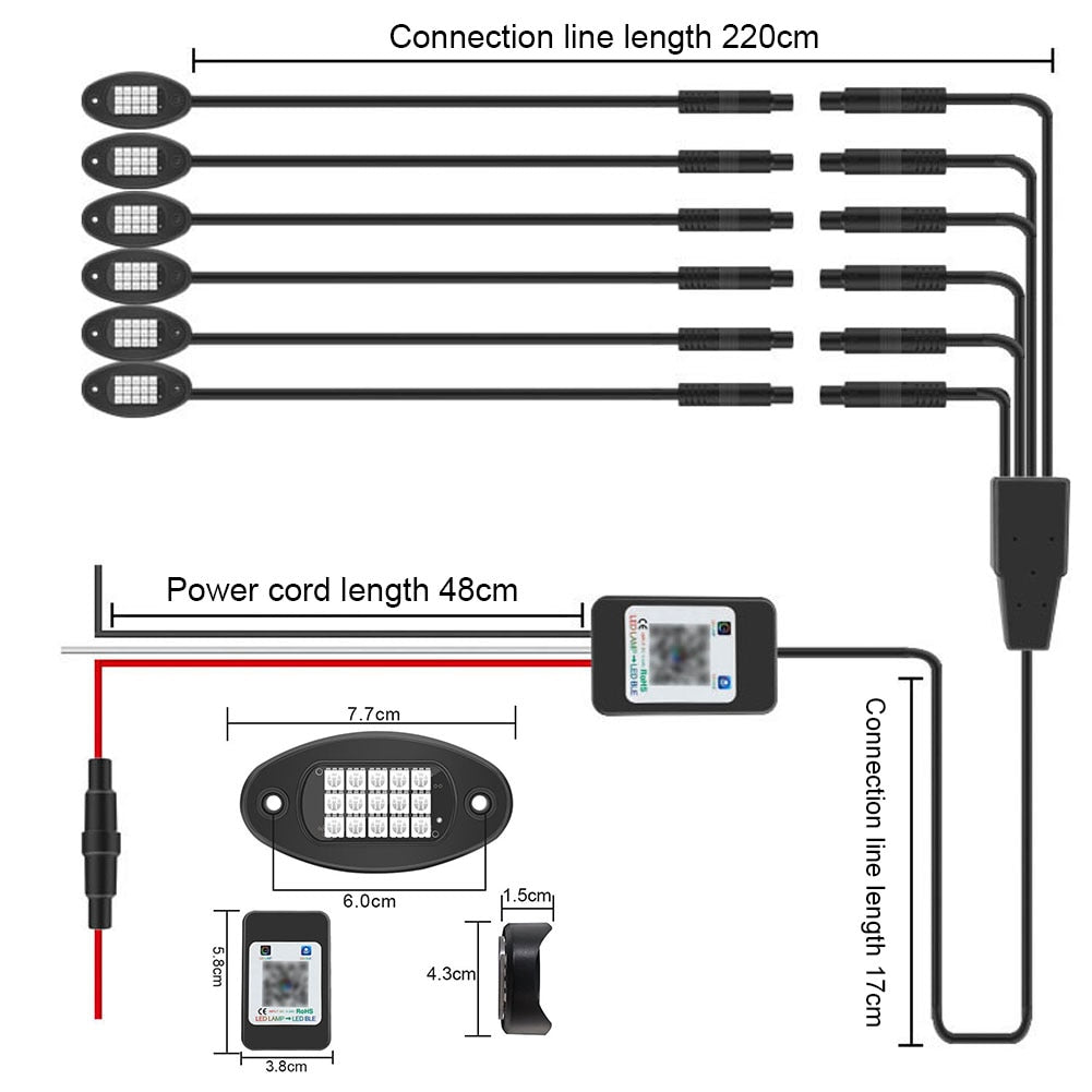 RGB LED Rock Lights for UTV SUV ATV Truck Car Under glow Lights Music Sync APP Control for IOS and Android Phone