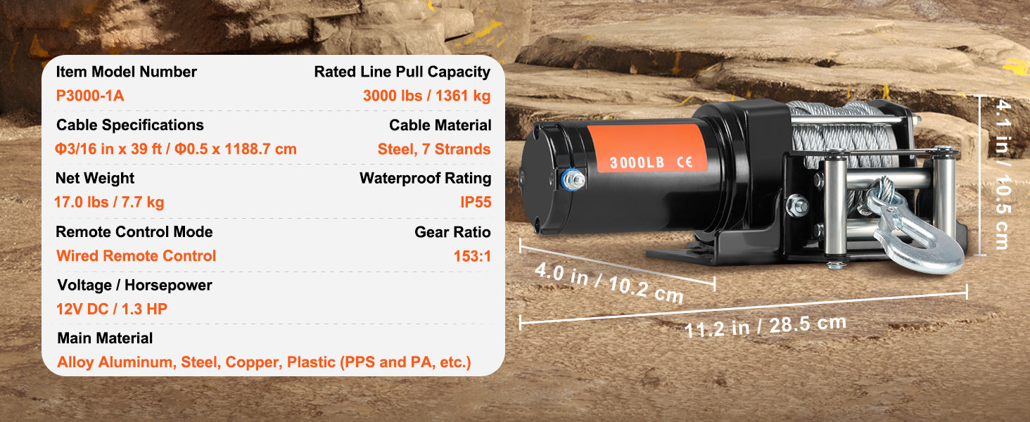 Consistent Power and Performance:Equipped with a 12V DC/1.3 HP copper motor, this winch delivers continuous, steady power that ensures you never get bogged down, no matter the conditions. The advanced planetary gear system, combined with a 153:1 gear ratio, gives you smooth, controlled pulling, even in the harshest environments.
