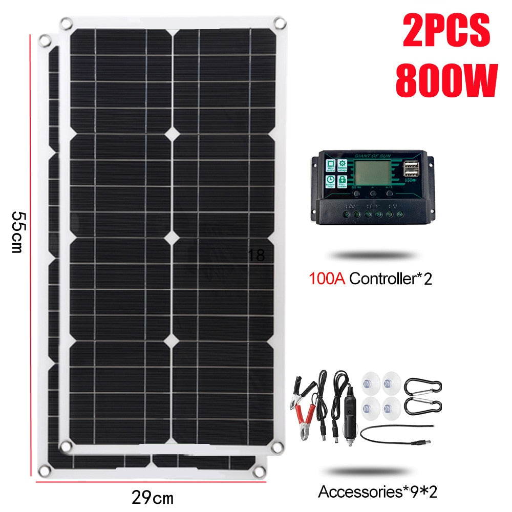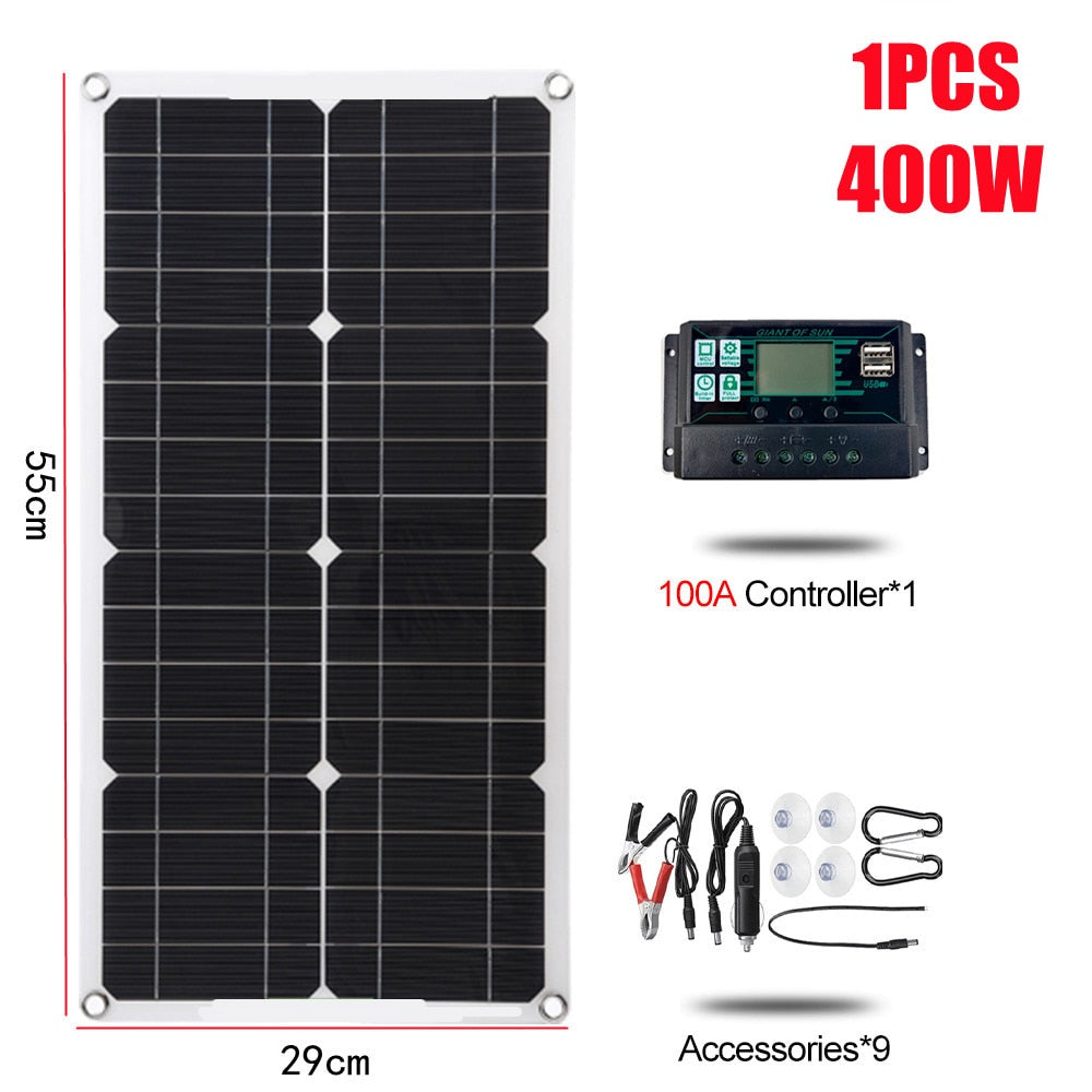 This is a great entry level starter kit to solar power. 300Watt Solar Panel kit comes Complete with a 12 Volt Polycrystalline panel, USB Power, Portable Outdoor Rechargeable Solar Cell for LED Lighting and camping.