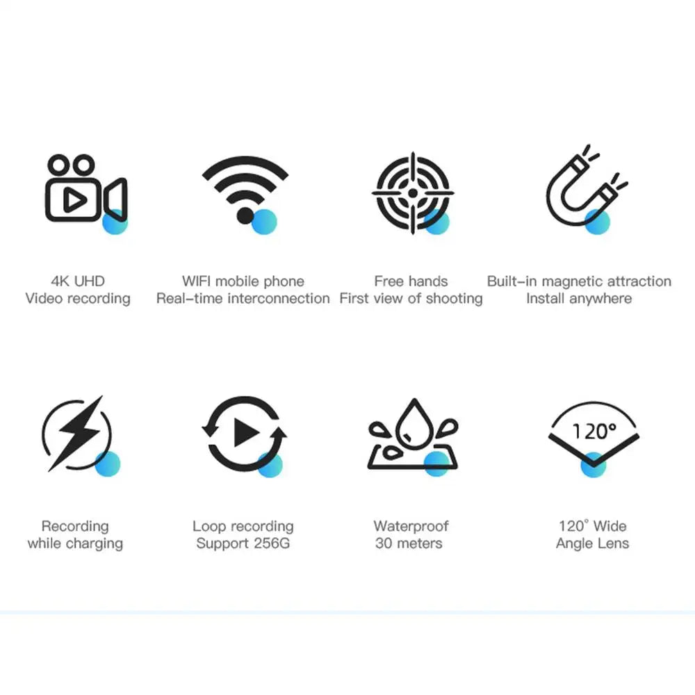 Tiny 4K Action Camera 360-Degree Rotatable Wearable Underwater Sports Video Streaming Compact 1080P Resolution Body Camera