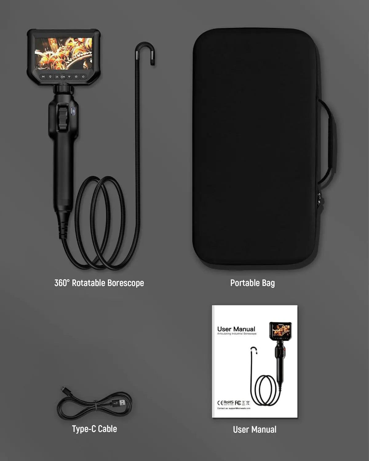 Two-Way Articulating Borescope Industrial Endoscope Camera with Light,1m Inspection Scope for Automotive and Aircraft Mechanics