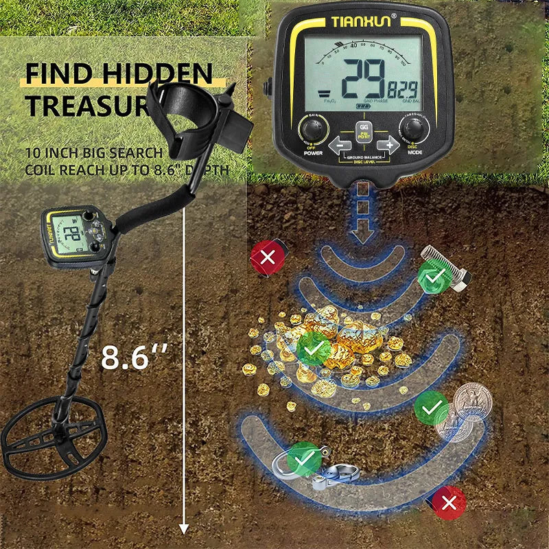 1. The TX-850 Metal Detector comes with high sensitivity and strong ability. With this metal detector, you can hunt for coins, relics, jewelry, gold, and silver in anywhere.